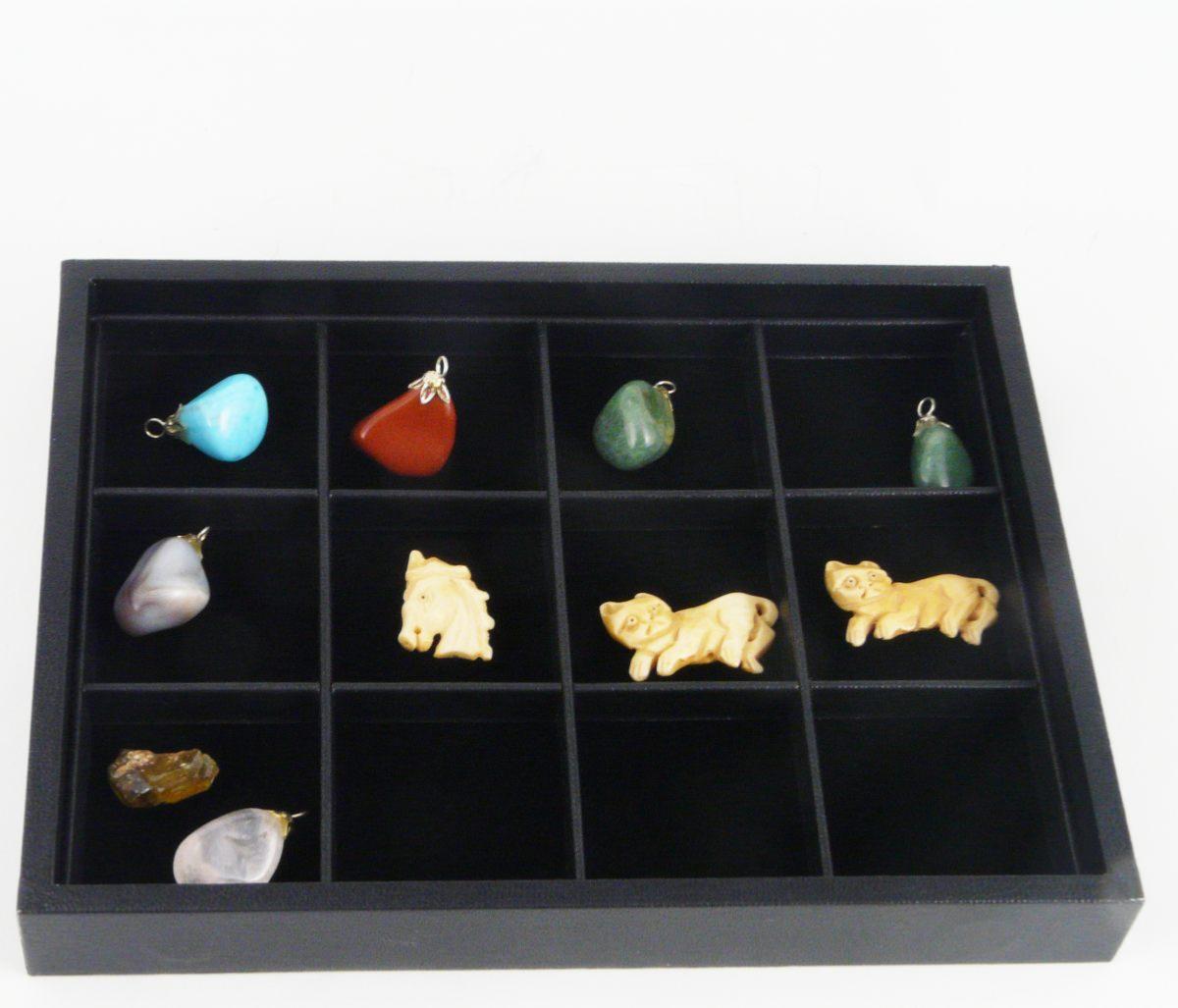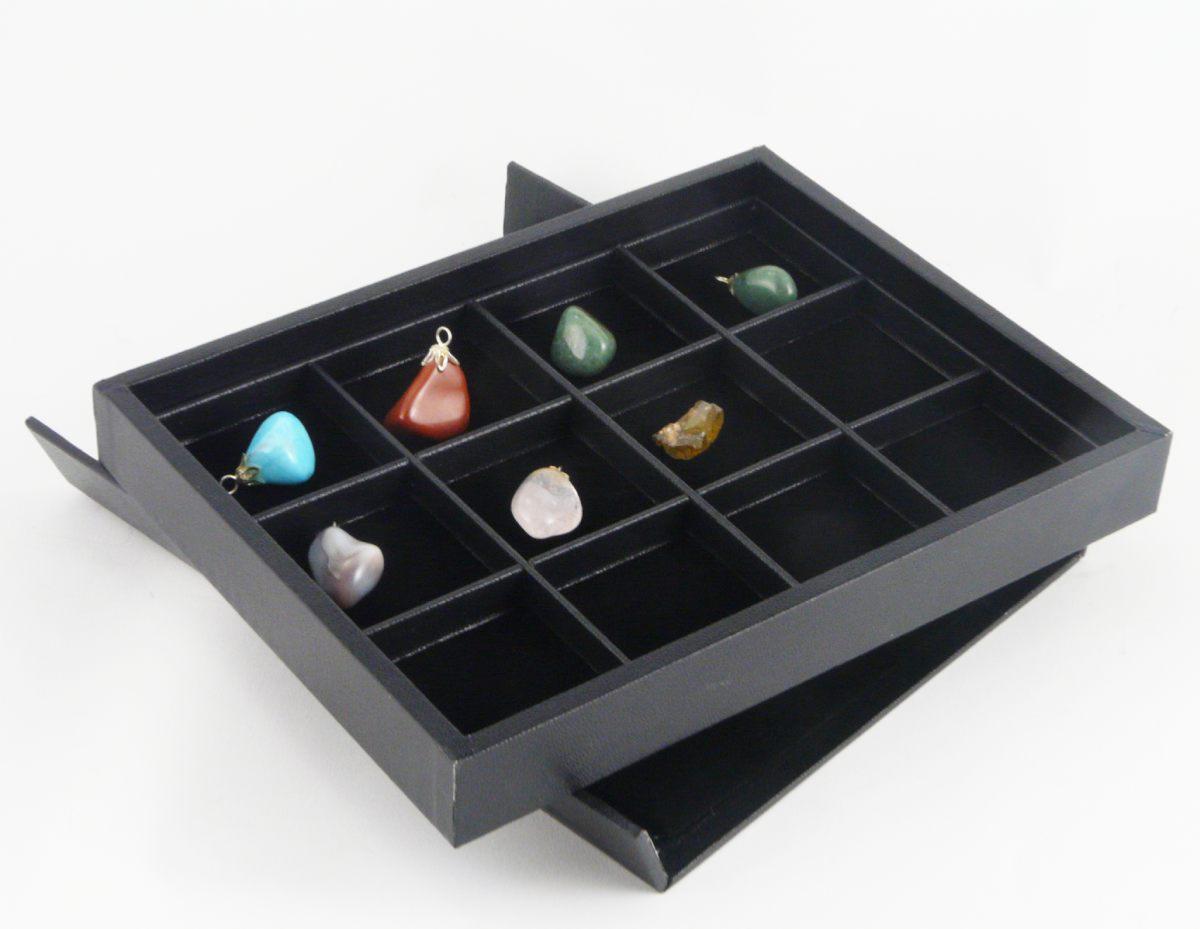 ✅ 12 compartiments de 5 x 5 cm – format standard pour boîtes de gemmologie.