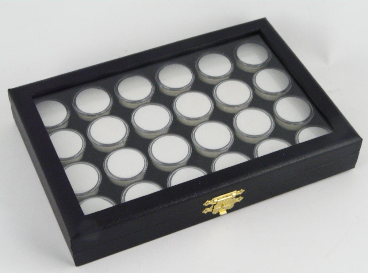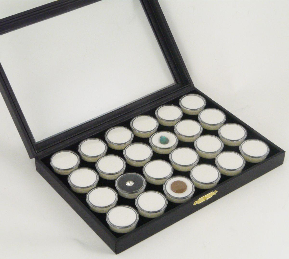 Coffret vitré de gemmologie CPTR24V – avec 24 boîtes rondes pour pierres fines