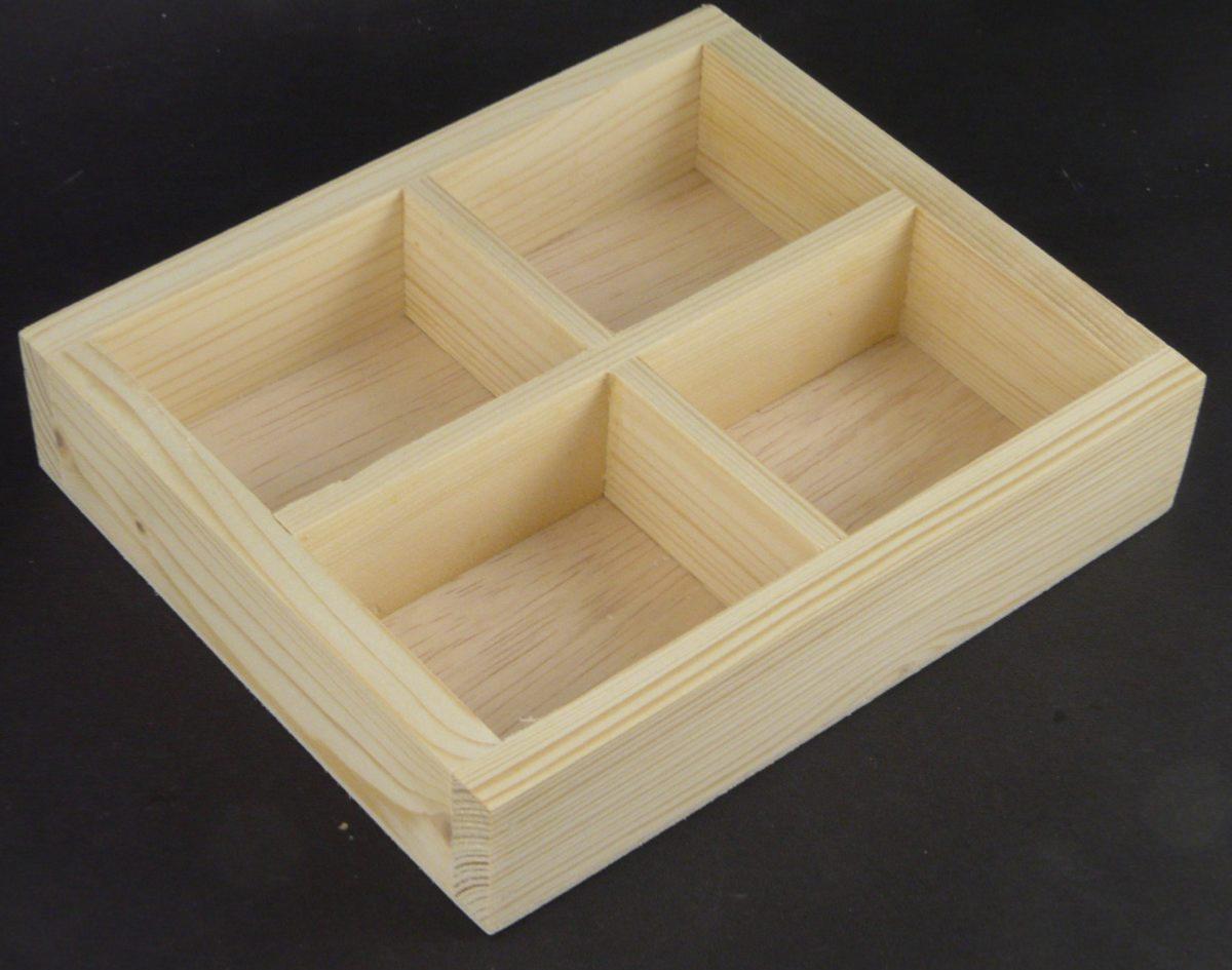 2) Plateau fabriqué artisanalement en bois naturel 16x19x4cm, 4 casiers.